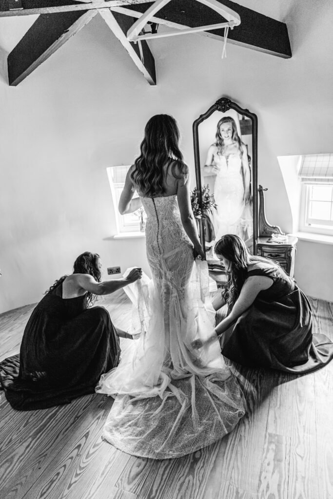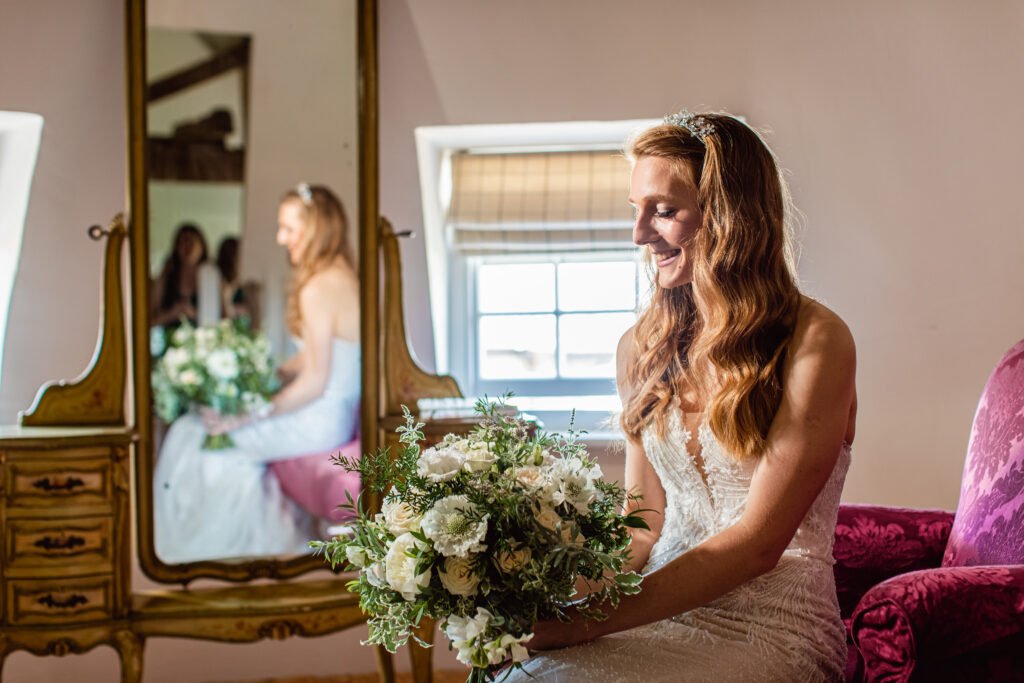 In the picturesque setting of The Barn, Bury Court in Surrey, Camilla and Matt’s wedding unfolded like a fairy-tale dream. With breathtaking grounds adorned with blooming gardens and stunning views of the Surrey hills, Something Blue, the friendly and approachable wedding photography and video specialists, were honoured to be a part of this magical day, capturing every cherished moment of love and beauty.