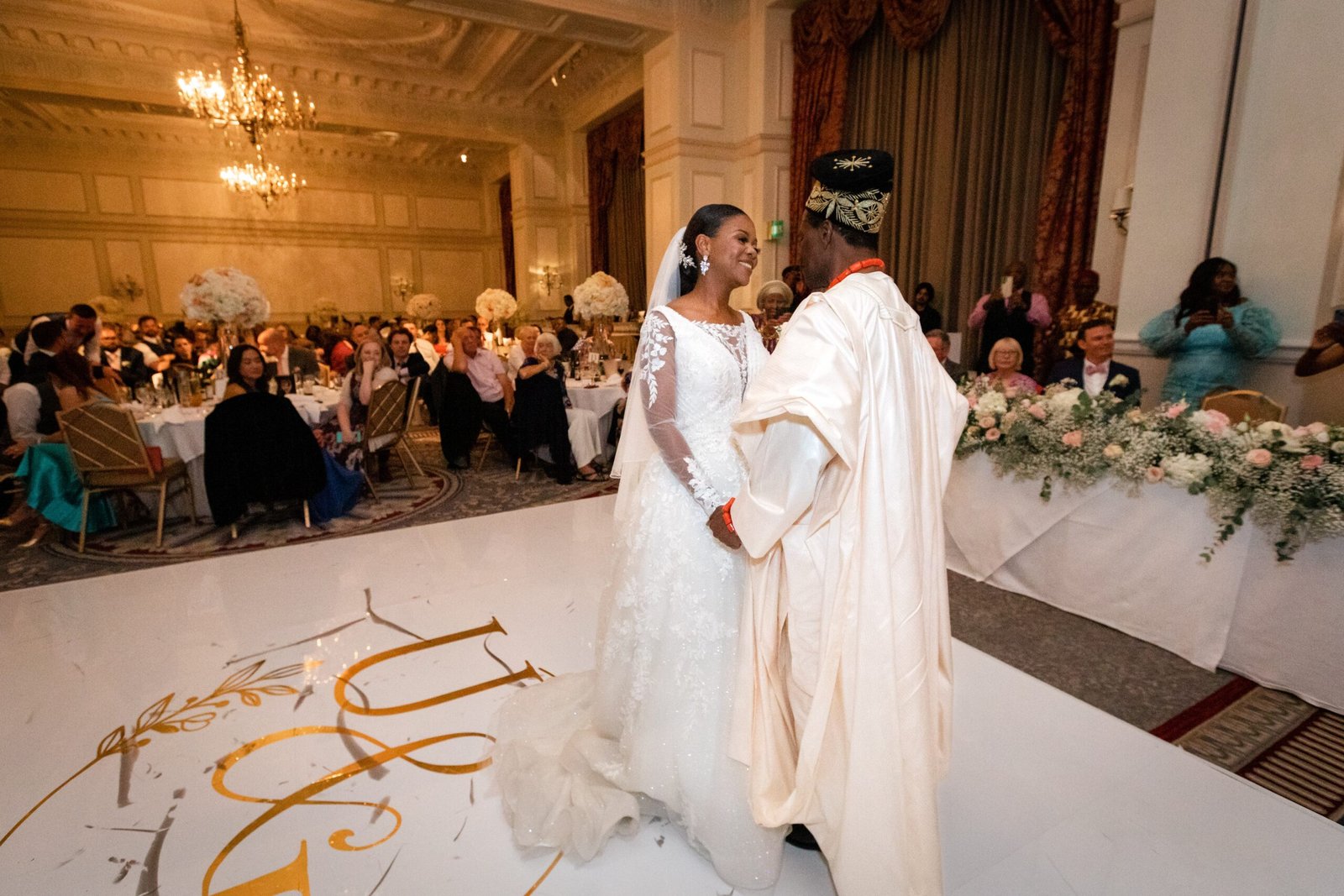 Following their heartfelt ceremony, the celebration continued at The Landmark Hotel, a venue renowned for its timeless elegance and unparalleled hospitality. With its grand ballrooms and luxurious amenities, The Landmark Hotel provided the perfect setting for Uzoma and Laurence’s reception, attended by an impressive 300 guests. The festivities were a harmonious blend of cultures, with the sweet melodies of a saxophone player filling the air, and the rich traditions of Nigeria adding a touch of vibrancy and excitement to the evening.