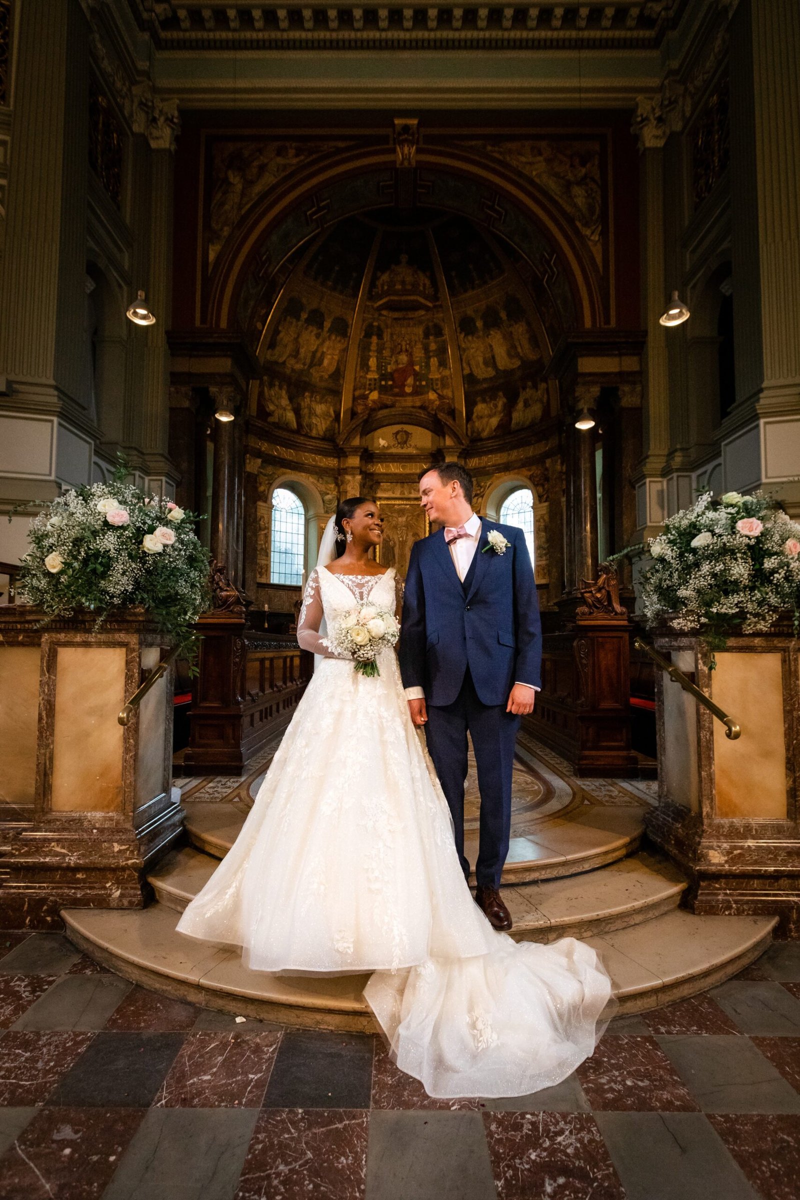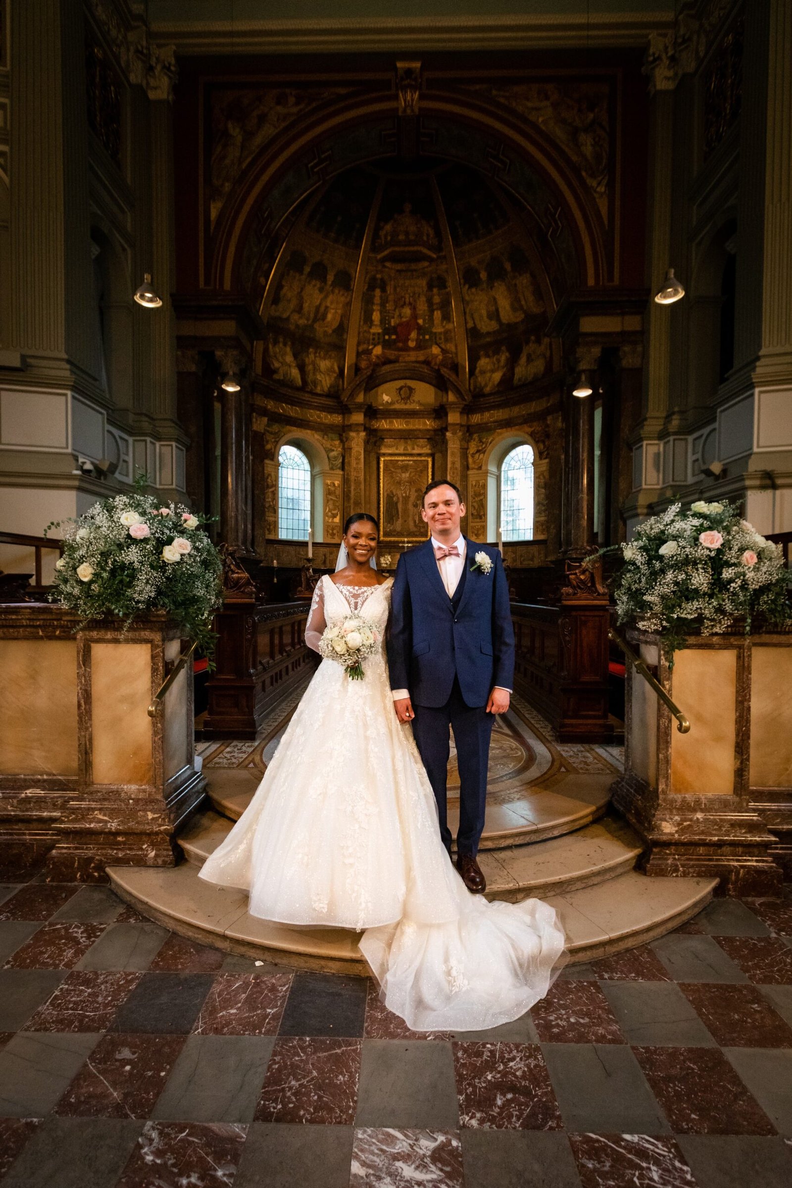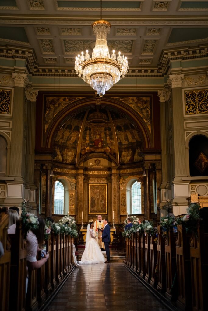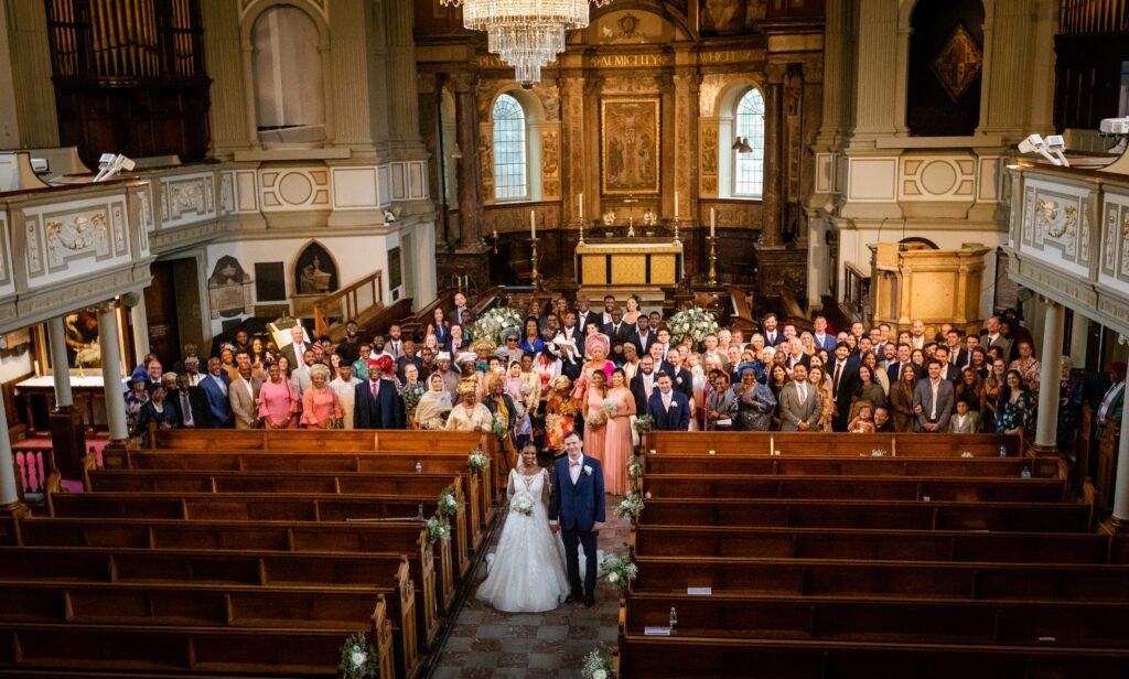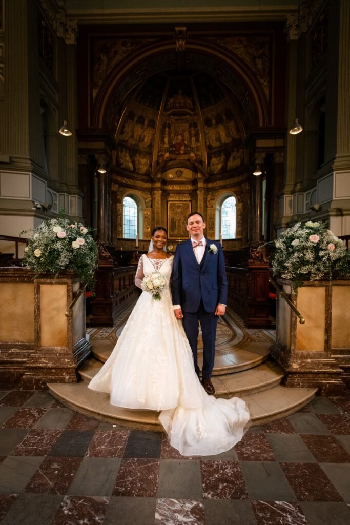 In the heart of London, amidst the bustling streets and historic landmarks, Uzoma and Laurence embarked on a journey of love and togetherness, exchanging vows at the stunning St Marylebone Church Parish. This beautiful church, with its timeless charm and rich history, provided the perfect backdrop for their heartfelt ceremony. As Something Blue, the esteemed wedding photography company, we had the immense pleasure of capturing every cherished moment of their special day, preserving the joy and grandeur that filled the air.